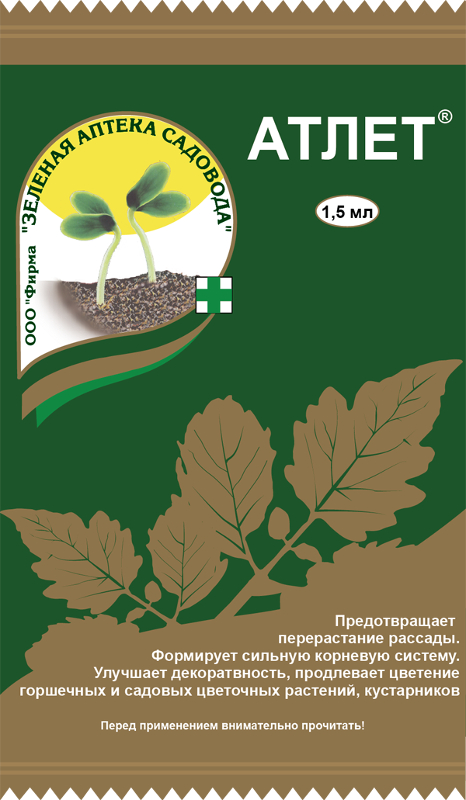 Препарат Атлет стримує зростання у висоту надземної частини рослини, при цьому сприяє потовщення стебла і значного зростання коренів.